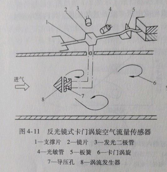 2)反光镜检测式。反光镜检测式空气流量传感器的原理如图4-11所示。