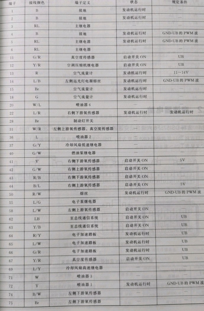 以吉利2014年款博瑞车型为例,JLV-6G35V发动机电脑端子图如图1-15所示,端子定义见表1-24、表1-25.