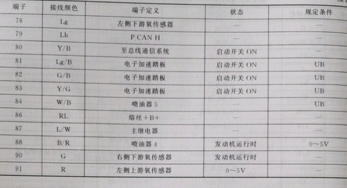 JLV-6G35V发动机电脑91针端子定义