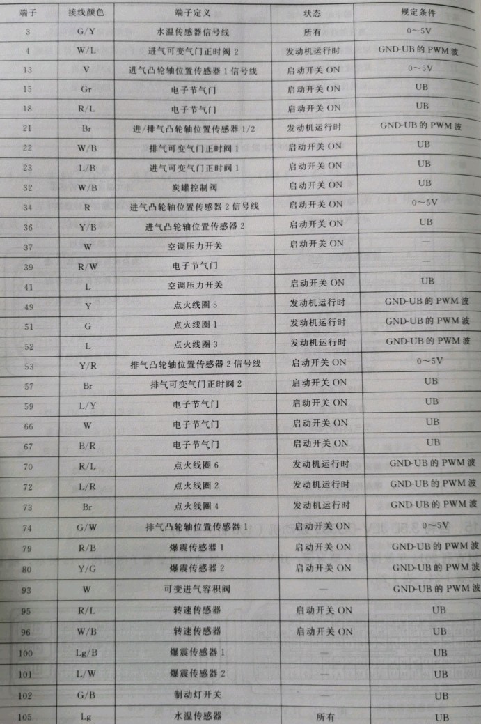 JLV-6G35V发动机电脑105针端子定义