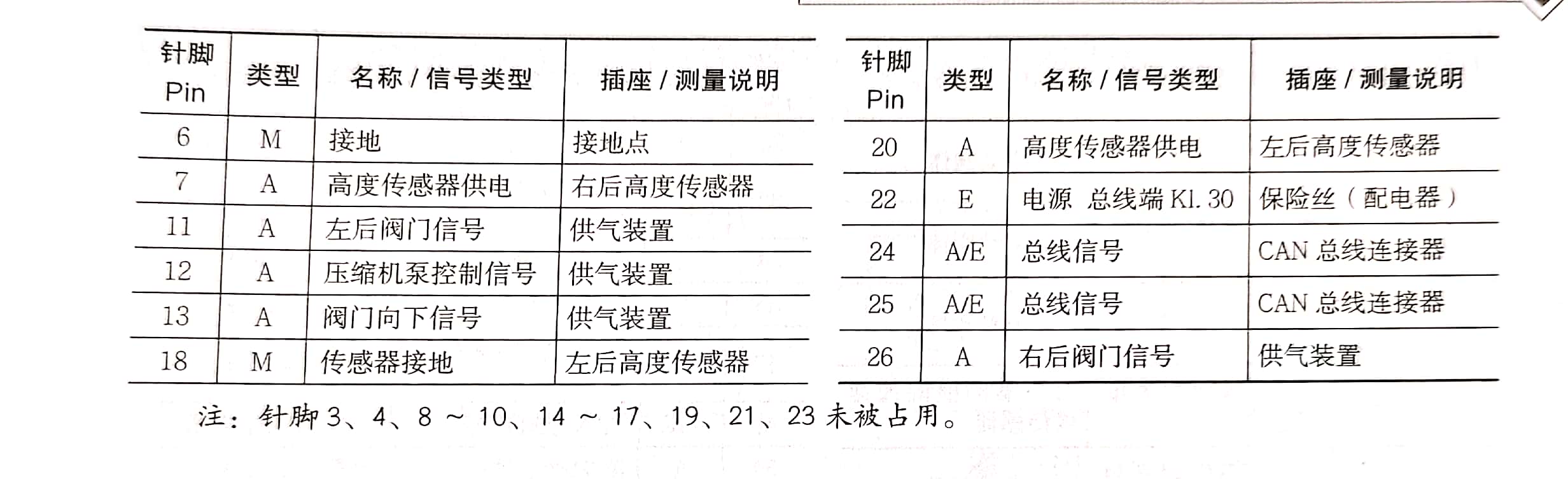 宝马7系E66A118空气悬挂控制单元针脚布置
