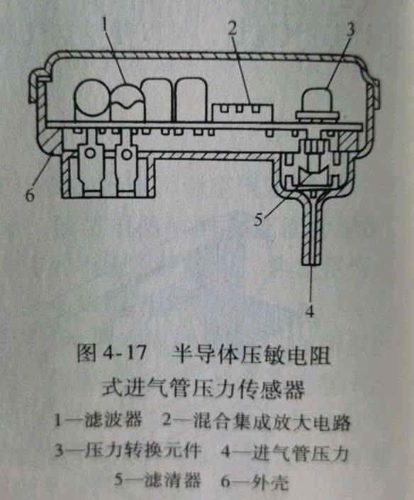 传感器的压力转换元件中有硅膜片,硅膜片受压变形会产生相应的电压信号。硅膜片的面是真空,另一面导入进气管压力,当进气管压力变化时,硅膜片的变形量就会随之改变,硅膜片上的敏感元件产生与进气管压力相对应的电压信号。进气管压力越大,硅膜片的变形量也越大,传感器的输出的电压也就越高。(3)进气管压力传感器的特点相比于起相同作用的空气流量传感器,进气压力传感器的优点是安装位置灵活,可利用真空管的引导,将进气压力传感器安装在远离发动机进气管的适宜之处,有的汽车发动机电子控制系统还将进气压力传感器安装在发动机电子控制器的内部。