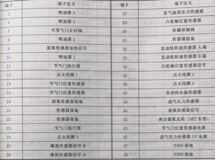4G20/24发动机电脑端子图4G20/24发动机电脑64针端子定义4G20/24发动机电脑48针端子定义
