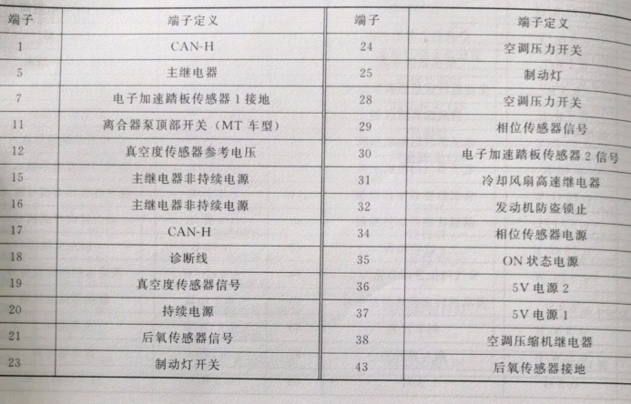 以吉利2016年款博越车型为例,4G20/24发动机电脑端子图如图1-14所示,端子定义见表1-22、表1-23